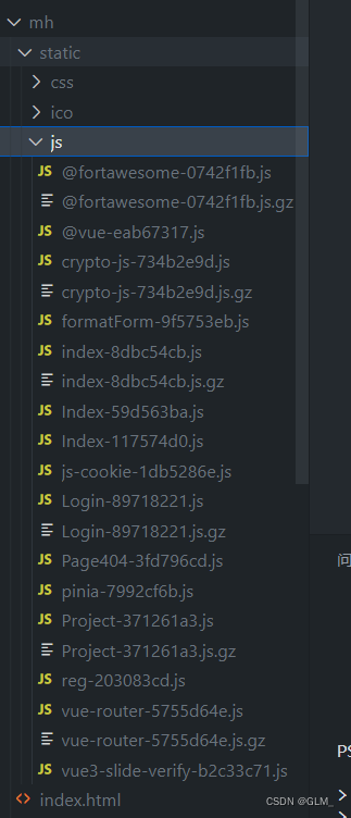 看这个打包效果,已经很受用了,那目录结构如下,把打包好的项目放入服务器目录,服务器开启gzip服务即可应用了;
